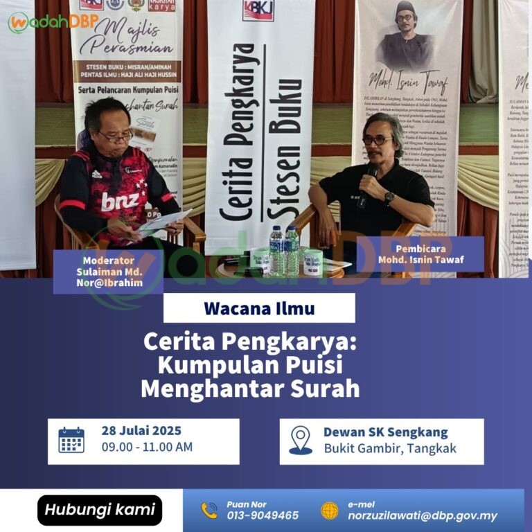 Aktiviti Cerita Pengkarya: Kumpulan Puisi Menghantar Surah Norzuzilawati binti Sulaiman 3 Oktober 2025 DBP Wilayah Utara Karya ini adalah © Hak Cipta Terpelihara WadahDBP. Sebarang salinan tanpa kebenaran akan dikenakan tindakan undang-undang. Hantar Undian Penilaian purata / 5. Kiraan undi: Tiada undi setakat ini! Jadilah yang pertama menilai kiriman ini. Kongsi